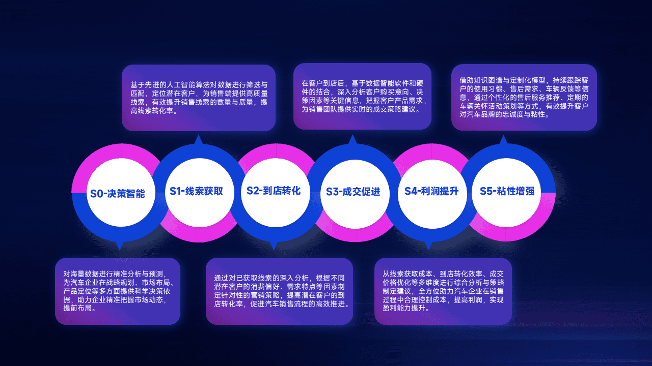 通过拓宽潜在客户来源、、优化线索分配并提高到店转化率,,,,以增强销售效率。。同时,,利用线索数据不断优化分析模型,,有效提升转化率,,扩大营销影响力。。